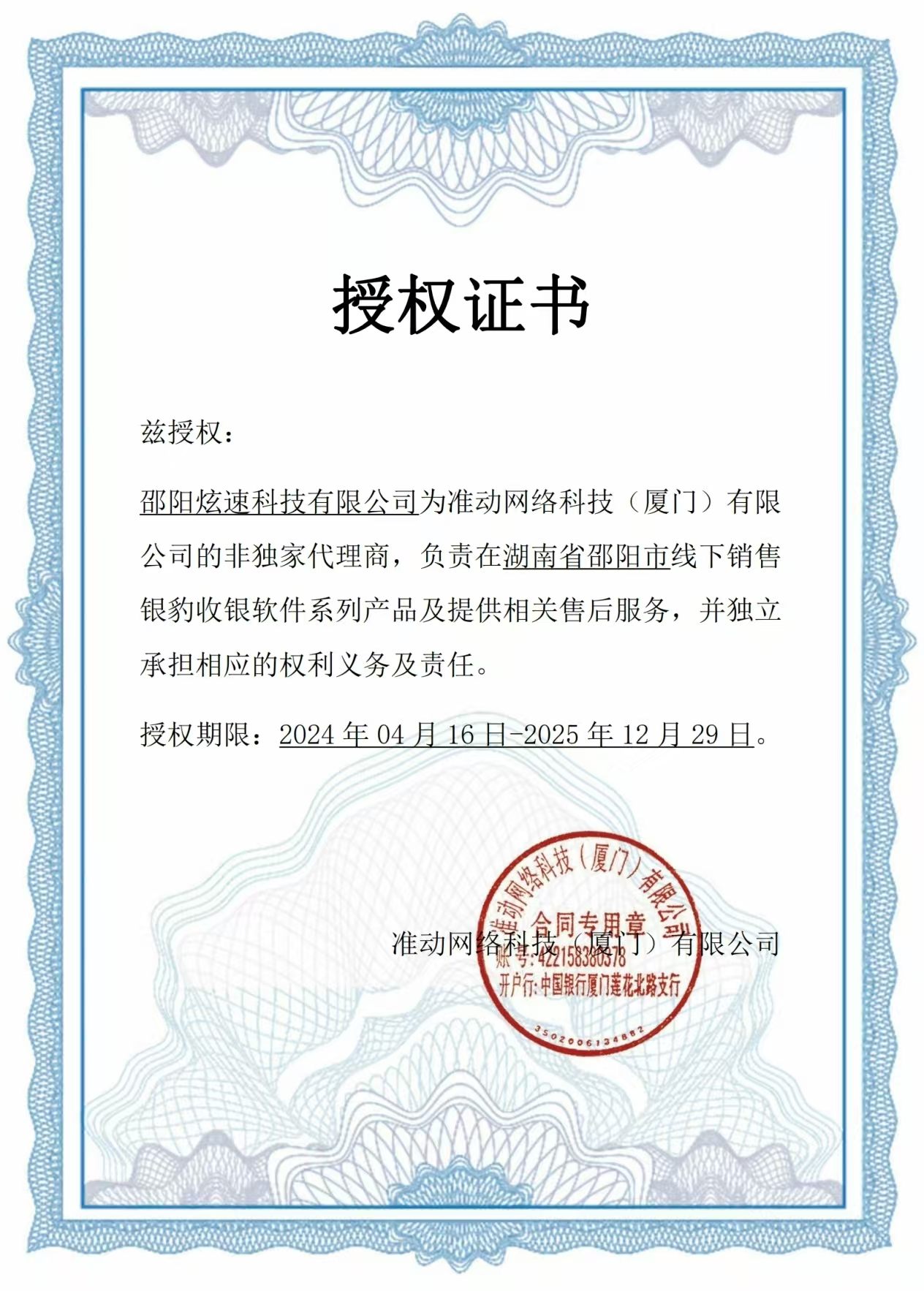 銀豹-授權(quán)證書